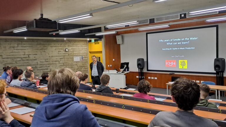 This year, the Symposium’s guest speaker was none other than Jan-Olof Gullö. Flying over from The Royal College of Sweden, his keynote speech was an eye-opening investigation into the lyrical content and back story of Deep Purple’s seminal Smoke on the Water. His speech highlighted the little-known (and highly eventful) story of the records’ recording and production process. With many behind-the-scenes photos and facts, it gave students valuable insight into the track’s history.